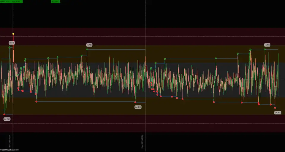 The Tick Extreme marker also plots the highest and lowest TICK value of the day on the chart. High TICK at high prices or low TICK at low prices are often a point where the trend is likely to reverse as shown above.