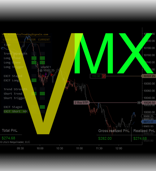 The VMX selects a highly profitable time of day to trade during the cash session for stock index futures. This system takes advantage of the volatility created by big institutions moving asset allocations in the equity markets.